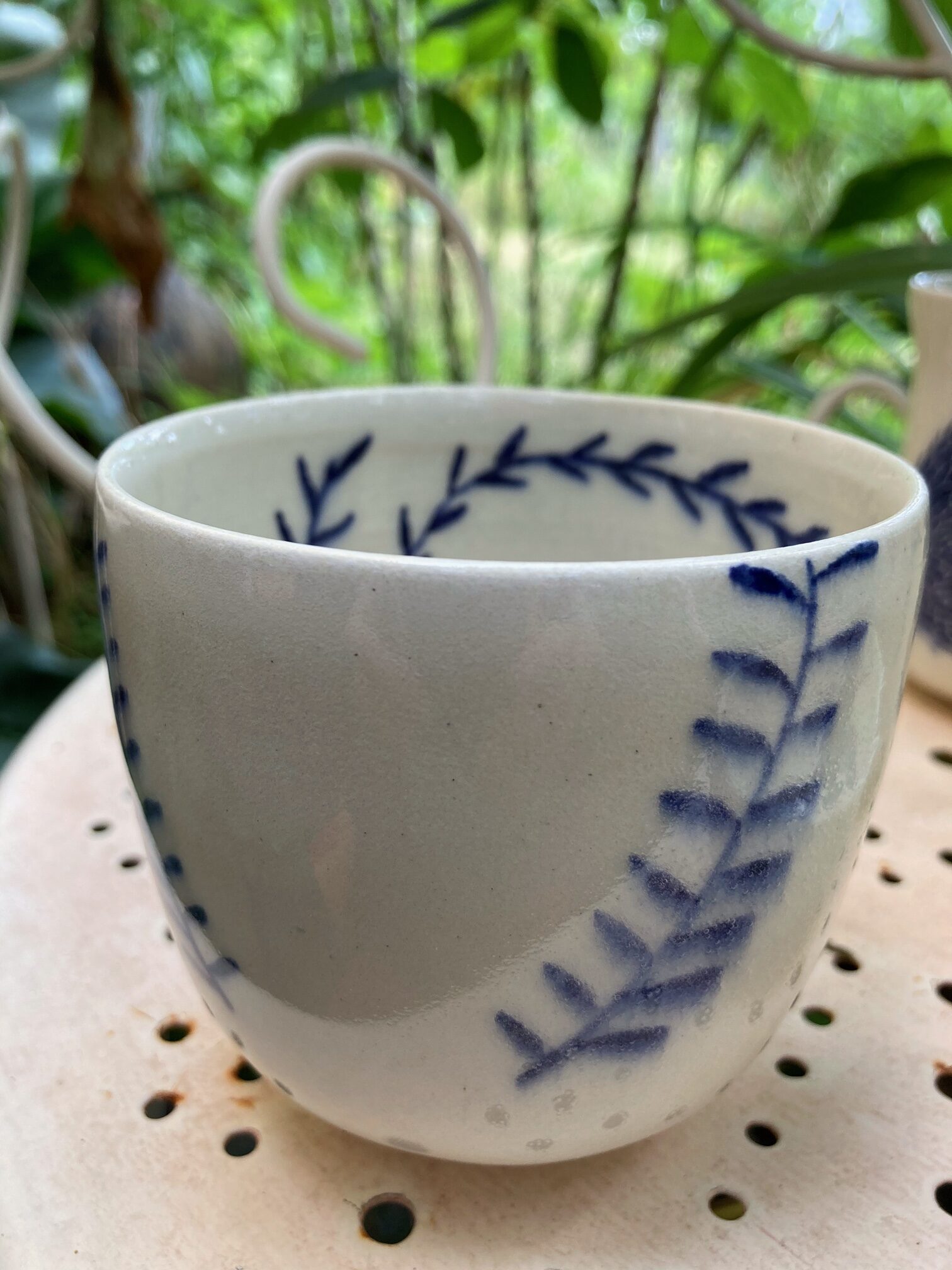 Danse la série nature Tasse à café fougères en faïence blanche émaillée.